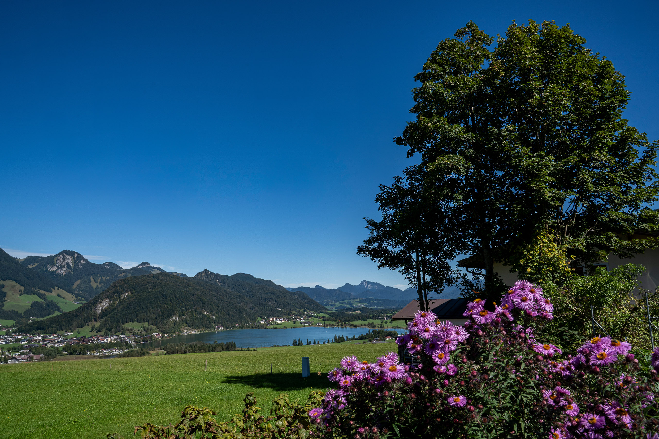 In addition, there is a storage room and a paved terrace with garden furniture and a large green area in front of and next to the house - for undisturbed sunbathing and relaxing. No through traffic, view to the picturesque Walchsee and to the Kaisergebirge; Internet fibre optic cable: Very good W-Lan in the entire house (also very suitable for video conferencing!).